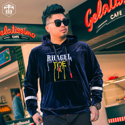 Tide thương hiệu nam size lớn 2019 thu đông mới nhung vàng chất béo anh em áo len trùm đầu cộng với phân bón để tăng chất béo áo khoác nam - Áo len áo len nam hàng hiệu