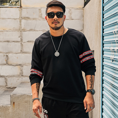 Tình yêu quý tộc kích thước lớn nam giới thương hiệu áo len béo nam lỏng lẻo mùa xuân và mùa thu cổ tròn áo thun cộng với phân bón tăng áo khoác - Áo len áo hoodie cộc tay
