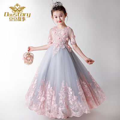 Trẻ em ăn mặc công chúa váy cô gái catwalk Trẻ em mặc váy hoa cô gái trang phục cưới trang phục dạ hội màu hồng phần dài - Váy trẻ em đầm cho bé gái