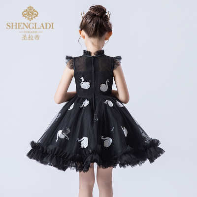 Trẻ em ăn mặc công chúa váy fluffy cô gái buổi tối ăn mặc mô hình màu đen catwalk nhỏ chủ trang phục piano - Váy trẻ em set vest kẻ cho bé trai Váy trẻ em
