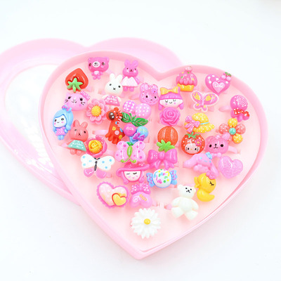 Trẻ em nhẫn trang sức dễ thương công chúa nhựa hoạt hình tình yêu đóng hộp cô bé món quà đồ chơi nhẫn đồ trang sức - Nhẫn nhẫn vàng 18k nam Nhẫn