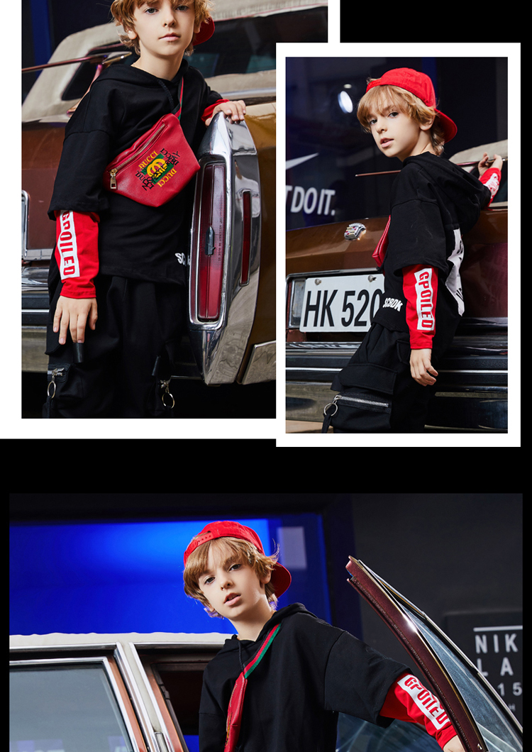 Trẻ em trống trang phục trong quần áo trẻ em mùa thu lớn quần áo bé trai đẹp trai phù hợp với bé trai đường phố nhảy xu hướng quần áo hip hop quần áo bé trai