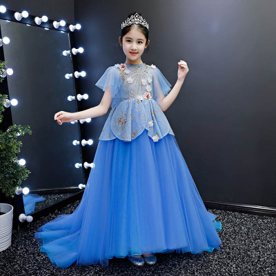 Trẻ em váy công chúa váy xanh đuôi váy sân khấu trình diễn catwalk trang phục mùa thu và mùa đông mới buổi tối bộ vest hàn quốc cho bé