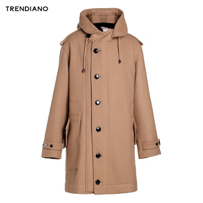 TRENDIANO quần áo mùa đông nam mới thường có màu lông rắn dài trùm đầu 3HC4341620 áo kaki nam