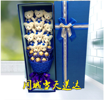 Trung quốc Ngày Valentine Giao Hàng Hoa 9 Phim Hoạt Hình Búp Bê Bouquet Gấu Sô Cô La Hộp Quà Tặng Nam Kinh Thành Phố Hoa lẵng hoa sáp Hoa hoạt hình / Hoa sô cô la