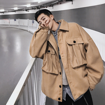 Ulzzang công cụ gió retro túi lớn áo khoác giản dị nam phiên bản Hàn Quốc của áo ve áo đơn ngực áo bomber nam