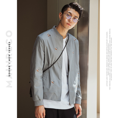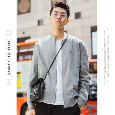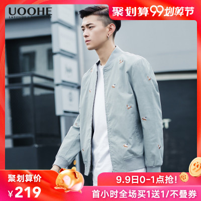 UOOHE mùa thu áo khoác nam mới tay dài xu hướng đẹp trai áo khoác thời trang giản dị thanh niên đồng phục bóng chày nam - Áo khoác đôi áo khoác nam đẹp