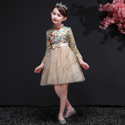 Váy hoa cô công chúa váy công chúa quý phái mẫu catwalk phong cách Trung Quốc trẻ em sườn xám guzheng trang phục dày tay dài bộ Vest cho bé trai lịch lãm Váy trẻ em