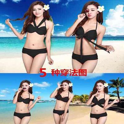Váy liền ngực nhỏ màu xanh cá tính xẻ bikini đen hở lưng áo tắm Xia Yan nữ đại học 2019 - Bikinis áo tắm sexy Bikinis