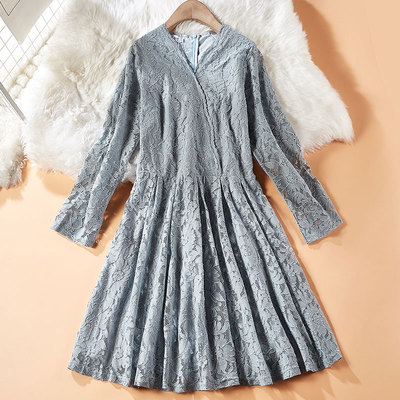 Váy mùa thu mới 2018 hoa rỗng cổ chữ V dài tay 5010 váy dự tiệc