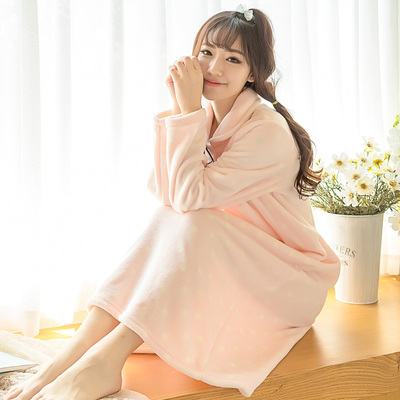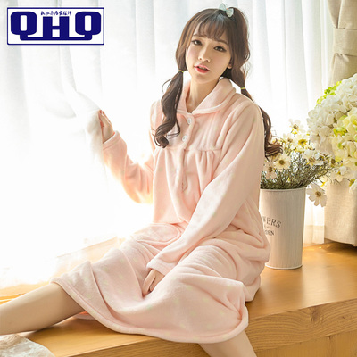 Váy nhung dày làm bằng vải dạ nữ cộng với đồ ngủ dài flannel mùa đông áo ngủ ngọt ngào cho bà bầu mùa thu và áo choàng sang trọng mùa đông bộ đồ ngủ