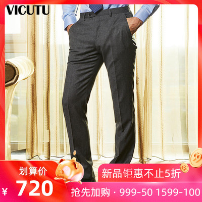 VICUTU Wei Keduo quần phù hợp với nam màu xám đậm kinh doanh thoải mái tinh khiết váy len - Suit phù hợp quần âu nam Suit phù hợp