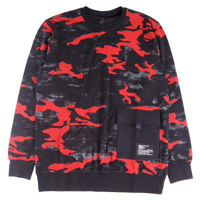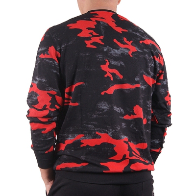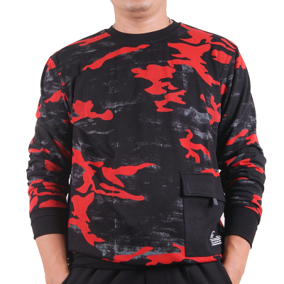 Vĩnh cửu cộng với phân bón XL nam chất béo mùa thu và mùa đông màu đỏ ngụy trang áo thun áo len người đàn ông béo - Áo len áo khoác nỉ form rộng