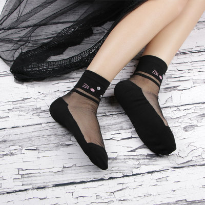 Vớ nữ mùa xuân và mùa hè lụa đen thủy tinh của phụ nữ vớ ren cotton vớ lụa trong suốt pha lê Nhật Bản và Hàn Quốc quần tất nữ mùa đông