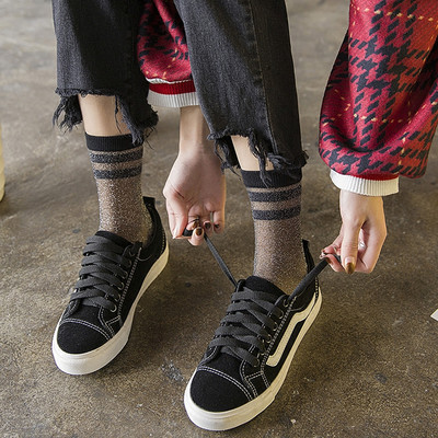 Vớ nữ ống mùa hè phiên bản Hàn Quốc của phần mỏng hai thanh trong suốt bằng thủy tinh pha lê vớ cotton đáy đường cá tính vớ - Vớ vớ gấu Vớ