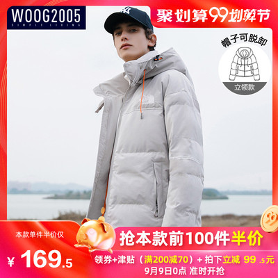 WOOG2005 mũ có thể tháo rời dày áo cotton nam 2019 mùa đông xu hướng mới mũ trùm đầu cổ áo bông - Áo khoác đôi thời trang nam Áo khoác đôi