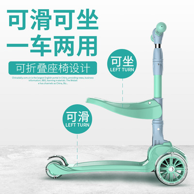 Xe tay ga trẻ em trượt ba trong một gấp gấp 1-12 tuổi flash bé gái bốn bánh - Trượt băng / Trượt / Thể thao mạo hiểm xe scooter gấp gọn Trượt băng / Trượt / Thể thao mạo hiểm