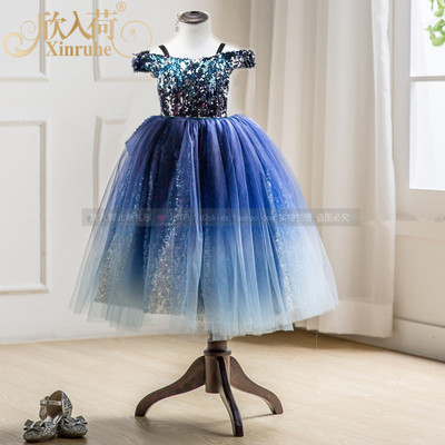 Xin chào các bé ăn mặc một vai lệch vai màu xanh sequin Giáng sinh tổ chức trang phục váy công chúa đầm xuân váy đầm thu đông cao cấp bé gái