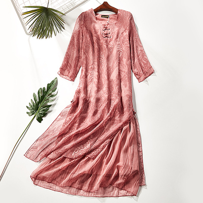 Xuân 2019 mới mang phong cách quốc tịch đầm voan cổ tròn nữ 0313-27 váy xếp ly