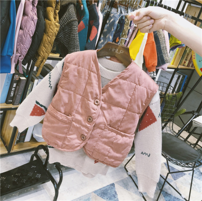 Xuân-Đông 2018 phiên bản mới của Hàn Quốc cho bé trai và bé gái dày giặt bằng vải cotton nhẹ và áo vest liền màu áo gile cho bé trai sơ sinh